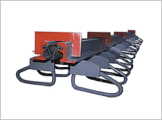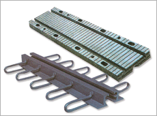 3)橡膠伸縮裝置。它是以橡膠帶作為跨縫材料。這種伸縮裝置的構(gòu)造簡單,使用方便,效果好。在變形量較大的大跨度橋上,可以采用橡膠和鋼板組合的伸縮裝置。 |